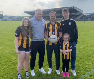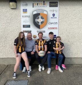 Michael, Karyn, Kasie &. Darragh McShane, Melbourne, will sponsor the ball, home, versus Dromintee. Michael & Darragh presented the ball to Paul, Caela & Lily. Thanks to the McShane family for your support.